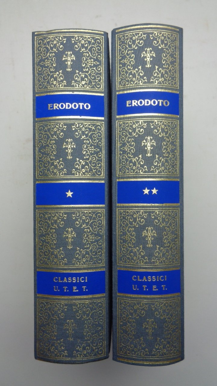 Due volumi (14,5x23 cm) di 821 e 771 pagine, con 11+6 illustrazioni fuori testo. A cura di Aristide Colonna e Fiorenza Bevilacqua. Legatura editoriale in tutta tela blu, titoli e fregi dorati al dorso, nella collana Classici Greci. Ottime condizioni.