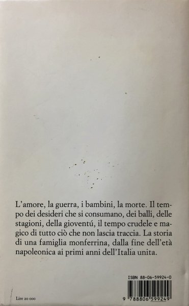 Il tempo dei desideri che si consumano, dei balli, delle stagioni, della gioventù, il tempo crudele e magico di tutto ciò che non lascia traccia. La storia di una famiglia monferrina, dalla fine dell'età napoleonica ai primi anni dell'Italia unita.