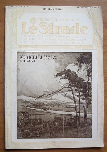 Le Strade. Organo dell'Istituto Sperimentale Stradale del T.C.I. (Fondazione Puricelli) e della Commissione Miglioramento Strade del T.C.I. Anno IX - N. 6. Giugno 1927.