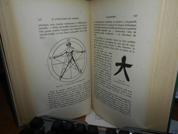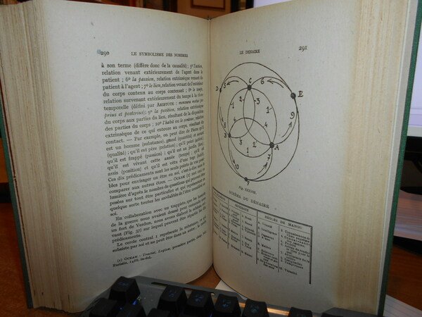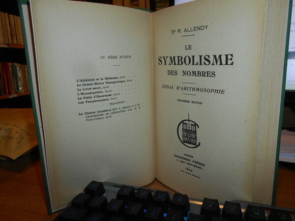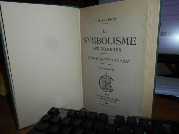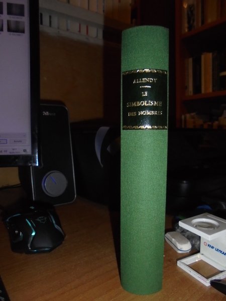 R. ALLENDY. Paris, Chacornac, 1948. LE SYMBOLISME des NOMBRES. Essai d' Arithmosophie. In-8°, tela verde con titolo in oro entro tassello al dorso, copertine originali conservate. xiv, 408, (1) pp. con figure nel testo. Ottimo esemplare con le copertine originali conservate. Uno strumento di conoscenza esoterica o sovrarazionale, l'aritmosofia, o scienza simbolica dei numeri , considera non i numeri aritmetici ma i numeri simbolici, giudicando che i primi non hanno un legame interiore con l'essenza degli oggetti a cui si riferiscono, mentre i secondi, dotati dotati di significato o forza simbolica, esprimono un'unione essenziale che hanno con i loro oggetti. Ad esempio, tutte e nove le Muse non avrebbero più la stessa virtù sintetica se fossero otto o dieci, anche se ciascuna conserverebbe caratteristiche simili.