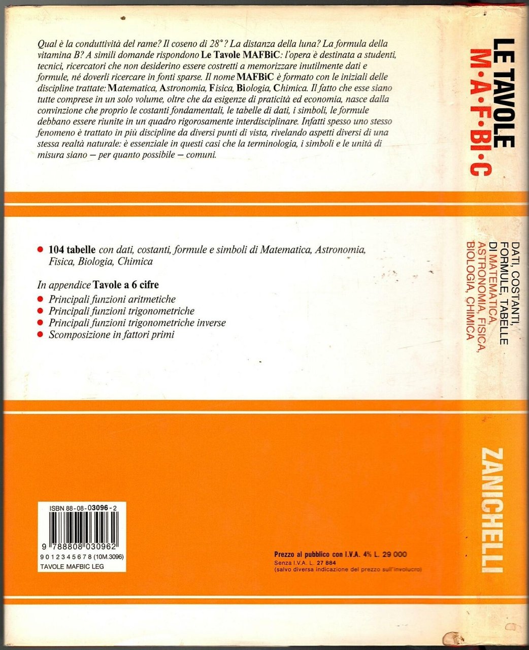 LE TAVOLE M A F BI C repertorio di dati, costanti, formule, tabelle di matematica, astronomia, fisica, biologia, chimica