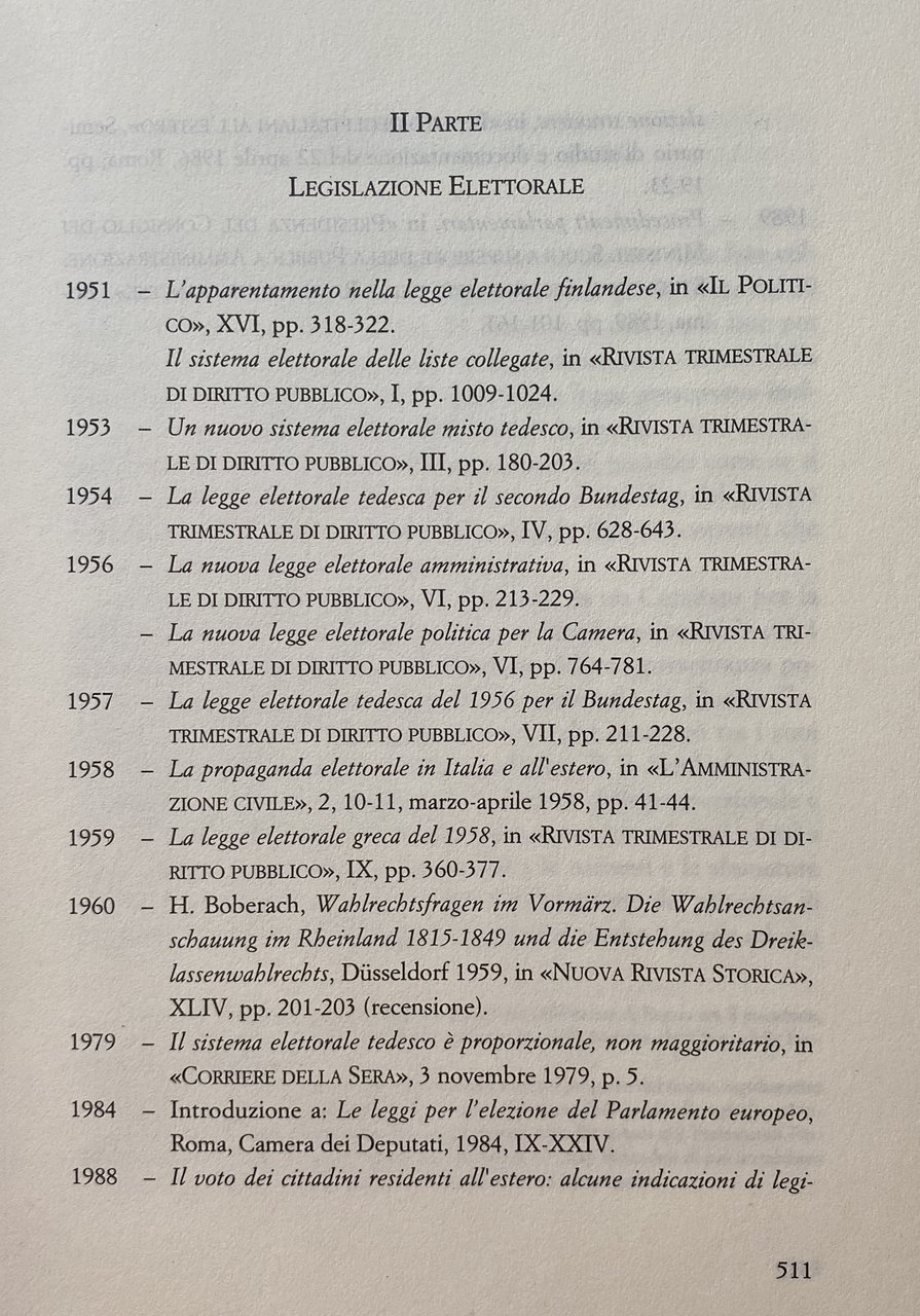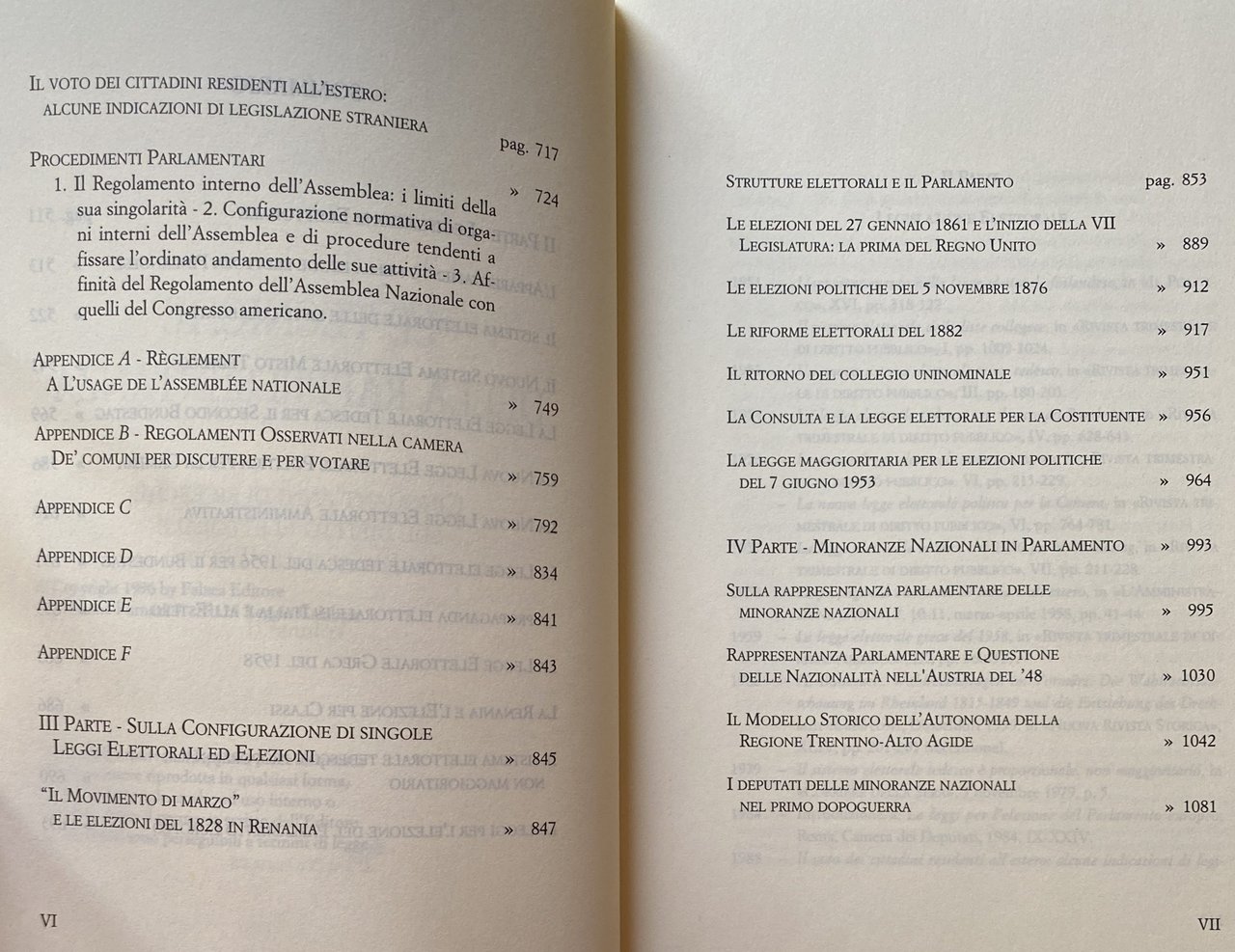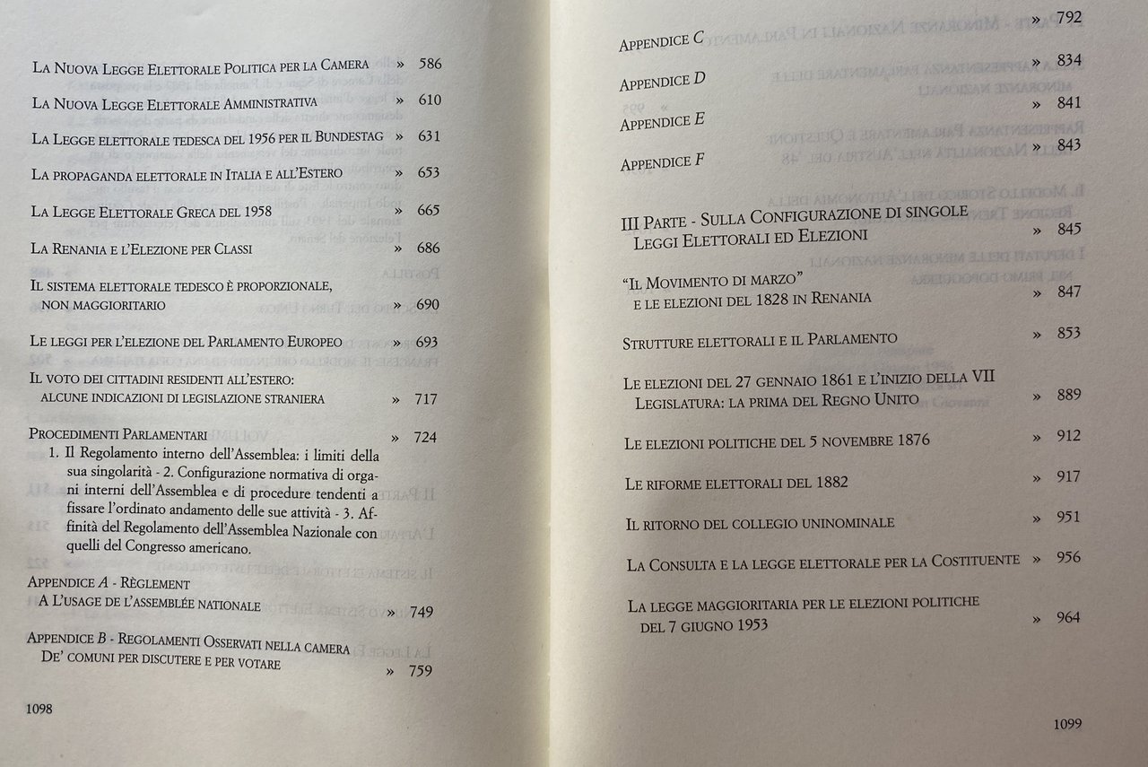 Soggetti: Diritto Elettorale comparato Schepis Sarteschi Tremaglia Togliatti Adenauer Assemblea Costituente Umberto Terracini Karl Von Grabmayr Costituzione Voto Cittadini Italia Europa Dopoguerra Suffragio Universale Donne Tecniche Rappresentanza Finanziamenti Regole Leggi Scienze Politiche Scienza Politica Politologia Ingegneria Costituzionale Studi comparati Stati Istituzioni Commissioni Contenzioso Corte Costituzionale Collegi Elezioni Ricorsi Liste elettorali Comunali Estero Storia TAR Tribunali Studi giuridici Ricerche Unione europea Parlamento Sistemi elettorali stranieri Germania Inghilterra Francia Austria Renania Elettorato Presidenzialismo Astensionismo Parlamentare Svezia Metternich Servizi postali Risorgimento italiano Relazioni internazionali Seggi Legislazione Crisafulli Manuale Mortati Bundestag Legislazioni straniere Opinione pubblica Maggioranza Minoranze Proporzionale Maggioritario Premio Assegnazione Bibliografia Riferimento Collezionismo Regno Repubblica Uninominale Sbarramento Soglie Tedesco Corruzione Ripartizione Cancellierato Premiere Presidente Camere Scioglimento Elezione Sfiducia Jean Moulin Giovanni Sartori Paladin Israele Knesset D'Alema Diretta Dieta Novissimo Digesto Doppio turno Attivo Passivo Fonti Deputati Senato Legittimazione Rilevanza Misto Propaganda Grecia Movimento di Marzo Regno Unito Apparentamento Kelsen Schmitt Boberach D'Hondt Liste Pareto Repgen Konrad Riforme Impeachment Lefebvre Nicotera Zanardelli Cairoli Trentino Alto Adige Comparative Electoral Law Constituent Assembly Constitution Voting Citizens Italy Post-war Europe Universal Suffrage Women Techniques Representation Financing Rules Laws Political Science Politology Constitutional Engineering Comparative Studies States Institutions Commissions Litigation Constitutional Court Colleges Elections Appeals Municipal Electoral Lists Abroad History Courts Legal Studies Research European Union Parliament Systems foreign voters Germany England France Rhineland Electorate Presidentialism Parliamentary Abstentionism Sweden Postal Services Italian Risorgimento International Relations Seats Legislation Manual Public Opinion Majority Minorities Proportional Majority Award Assignment Bibliography Reference Collecting Kingdom Single Member Republic Barring Thresholds German Corruption Allocation Chancellorship Premiere President Chambers Dissolution Election Confidence Israel Direct Diet Double shift Active Passive Sources Deputies Senate Legitimation Relevance Mixed Greece March Movement United Kingdom Separation Lists Reforms