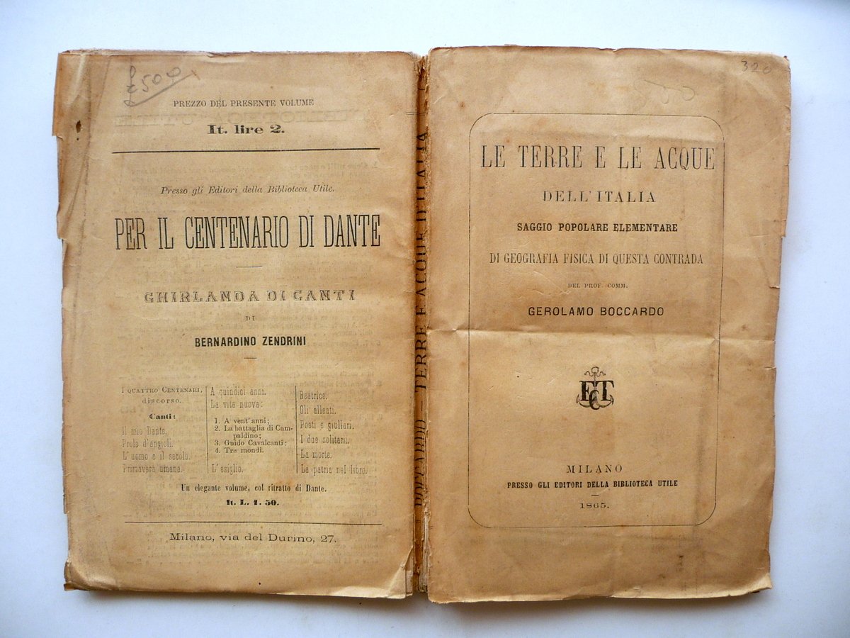Le Terre e le Acque dell'Italia Gerolamo Boccardo Biblioteca Utile Milano 1865