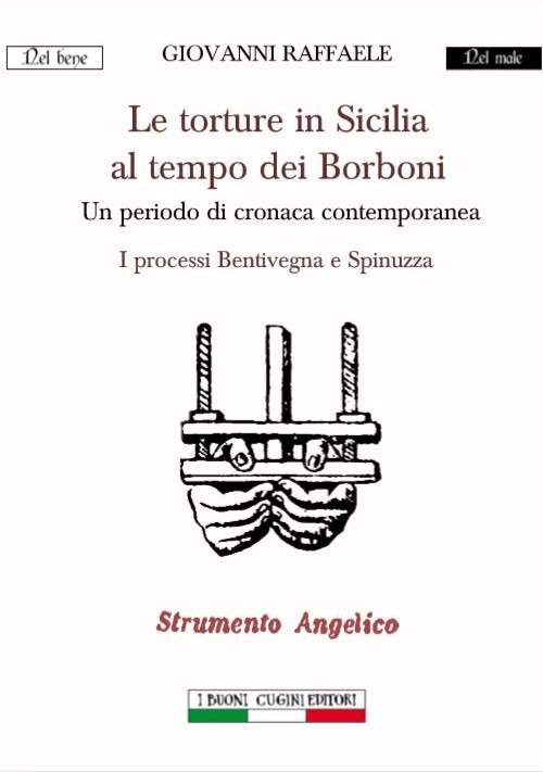Il governo borbonico in Sicilia negò sempre di usare la tortura nelle carceri e soprattutto di usarla sui prigionieri politici, ma Giovanni Raffaele dal 1850 al 1860, tramite delle corrispondenze alla stampa inglese, ne denunziò l’utilizzo sistematico anche mediante la raffinata costruzione di appositi strumenti come la cuffia del silenzio, la muffola, lo strumento angelico. Le sue corrispondenze, riportate in questo volume sono anche uno spaccato dell’obbrobriosa giustizia borbonica e trattano nello specifico anche dei processi farsa, con relativa fucilazione, del barone Francesco Bentivegna di Corleone e del patriota Salvatore Spinuzza di Cefalù, oltre alle torture applicate su i patrioti della provincia di Palermo: Giuseppe Maggio, Giuseppe Lo Re, Salvatore Bevilacqua, Vincenzo Sapienza, Santi Cefalù e sua figlia, Salvatore Maranto e Antonio Spinuzza, tutti eroi finiti nell’ingiustificato dimenticatoio della collettività.