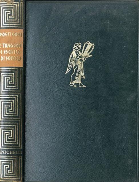 1113 p., [1] c. di tav., ritr. ; 21 x 13 cm. I poeti greci tradotti da Ettore Romagnoli. Contiene: «Aiace», «Filottete», «Le supplici», «I Persiani», «I sette a Tebe», «Prometeo legato», «Agamennone», «Le Coefore», «Le Eumenidi e Edipo re», «Edipo a Colono», «Antigone», «Elettra», «Le Trachinie», «I satiri alla caccia». Volume curato da Ettore Romagnoli (1871-1938), docente universitario di letteratura greca, drammaturgo e musicista, critico letterario e traduttore. Legatura editoriale, coperta in cartone rigido in similpelle di colore verde scuro con impresso il titolo con fregi in oro al dorso, figura ellenistica con arpa in oro al piatto. Pagine interne in carta india, taglio superiore dorato. Ritratto in b/n di Ettore Romagnoli in antiporta. Qualche lieve segno del tempo al taglio, per il resto libro integro. Codice libreria 6215.