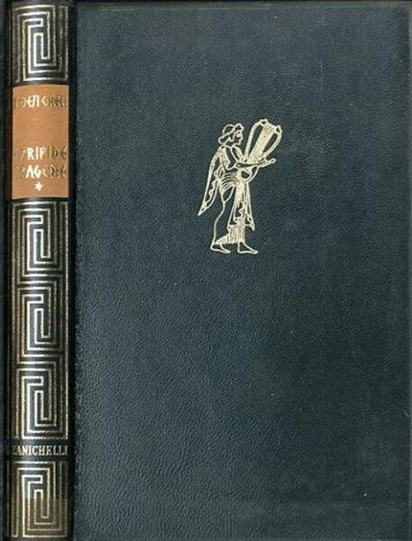 2 v. (800; 857 p.), [1] c. di tav., ritr. ; 21 x 13 cm. I poeti greci tradotti da Ettore Romagnoli. Contiene: «Ifigenia in Aulide», «Ifigenia in Tauride», «Reso», «Le Troadi», «Ecuba», «Elettra», «Oreste», «Andromaca», «Elena», «Il ciclope». Volume curato da Ettore Romagnoli (1871-1938), docente universitario di letteratura greca, drammaturgo e musicista, critico letterario e traduttore. Legatura editoriale, coperta in cartone rigido in similpelle di colore verde scuro con impresso il titolo con fregi in oro al dorso, figura ellenistica con arpa in oro al piatto. Pagine interne in carta india, taglio superiore dorato. Ritratto in b/n di Ettore Romagnoli in antiporta. Qualche lieve segno del tempo al taglio, per il resto libro integro. Codice libreria 6214.