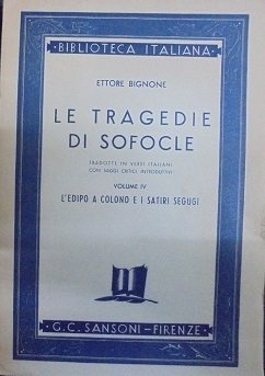 LE TRAGEDIE DI SOFOCLE. TRADOTTE IN VERSI ITALIANI CON SAGGI CRITICI INTRODUTTIVI VOL. IV. L`EPIDO A COLONO E I SATIRI SEGUGI.