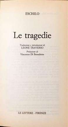 Le tragedie. Traduzione e introduzioni di Leone Traverso. Prefazione di Vincenzo di Benedetto.