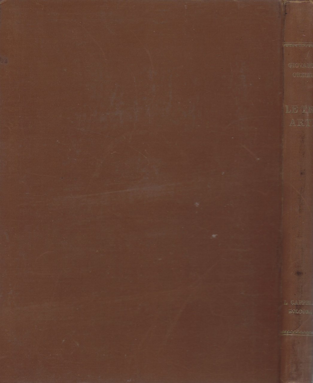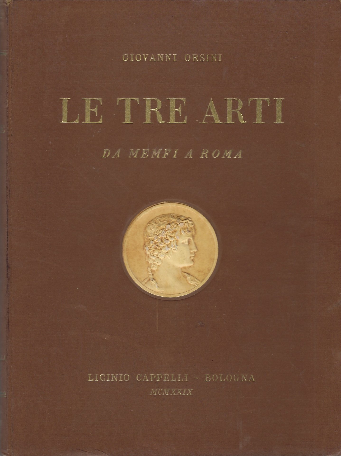 Legatura editoriale in cartonato rigido marrone con titoli al dorso e al piatto anteriore, quest'ultimo con una decorazione in rilievo.