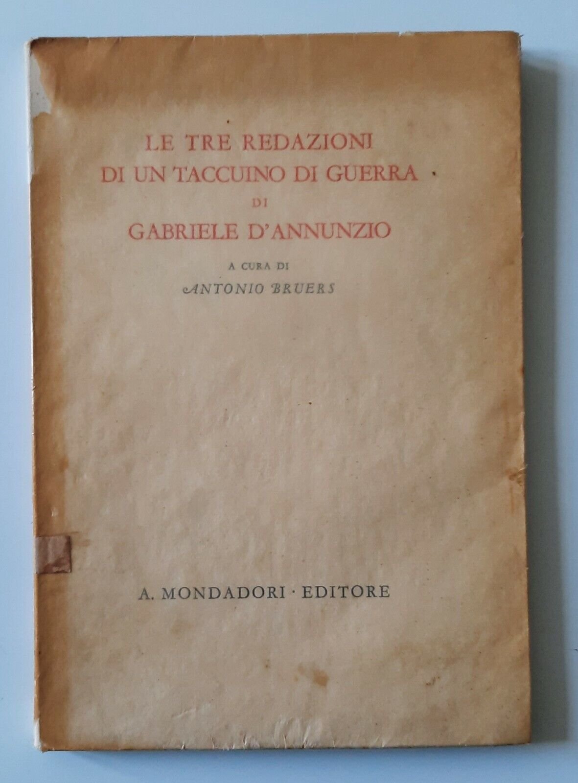 LE TRE REDAZIONI DI UN TACCUINO DI GUERRA DI GABRIELE D'ANNUNZIO MONDADORI 1942