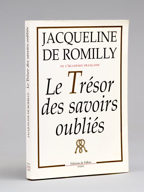 Envoi ms. de l'auteur, 1 vol. in-8 br., Editions de Fallois, Paris, 1998, 188 pp. Bel envoi de l'auteur à l'académicien Maurice Druon et à son épouse : "Pour Maurice Druon et pour Madeleine, ce livre "écrit" avec quelque peine. En témoignage d'affectueuse et chaleureuse reconnaissance." Maurice Druon (1918-2009), auteur notamment de la célèbre saga historique des Rois maudits, fut élu à l'Académie Française en 1968. Il en devint le Secrétaire Perpétuel, de 1985 à 1999. Jacqueline de Romilly fut élue à l'Académie Française en 1988. Bon état pour cet exemplaire, d'une origine prestigieuse.