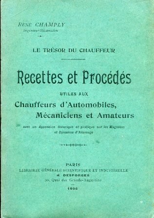 Le Trésor du Chaffeur. Recettes et procédés utiles aux Chaffeurs d'Automobiles, Mecaniciens et Amateurs, avec un Appendice théorique et pratique sur les Magnétos et Dynamos d'Allumage