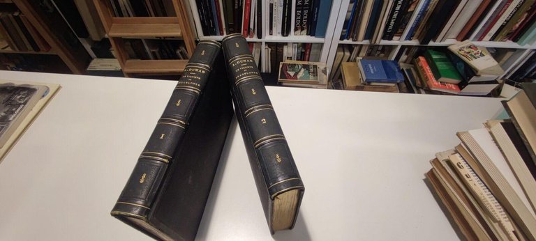 Alexandre Dumas - Le vicomte de Bragelonne Dufour et Mulat 1851 Edizione in due volumi con dorsi e piatti neri. Dorsi con tasselli e fregi dorati. Sguardie policrome. Tagli in oro in ottime condizioni. Libro in ottime condizioni, minimi segni del tempo: segni di abrasione ai piatti, fioriture leggere ma diffuse in entrambi i volumi. Non esitate a contattarci per altre foto o richieste. Saremo lieti di soddisfare ogni vostra esigenza.