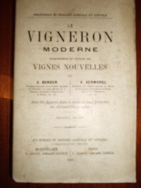 Un volume (19 cm) di XIII-436-(6) pagine; avec 80 figures dans le texte et deux planches en chromolithographie. Deuxième édition. Brossura originale (Una mancanza restaurata al retro. Importante e ricercato testo sulla coltura viticola alla fine del XIX secolo.