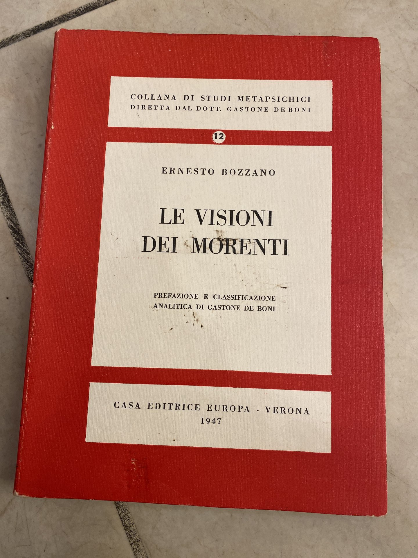Collana Studi Metapsichici n. 12, pp. 192, bros. edit. buone condiz. qualche segno a matita. Qualche macchia ai piatti.