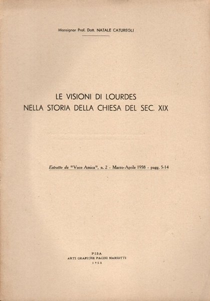 "Le visioni di Lourdes nella storia della chiesa del sec. XIX", edizione 1958, pp. 13, formato 17 x 24.