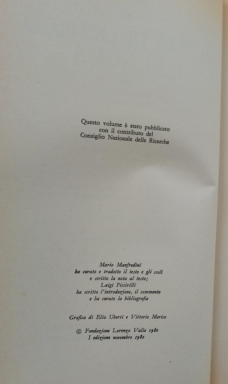 In 8', leg. ed. con sovrac., pp. XLIV, 346, a cura di Mario Manfredini e Luigi Piccirilli, prima edizione; volume in buono stato, lievi segni del tempo. ***Due to bureaucratic reasons, books dated over 70 years old cannot be immediately exported, please contact us before placing the order.***