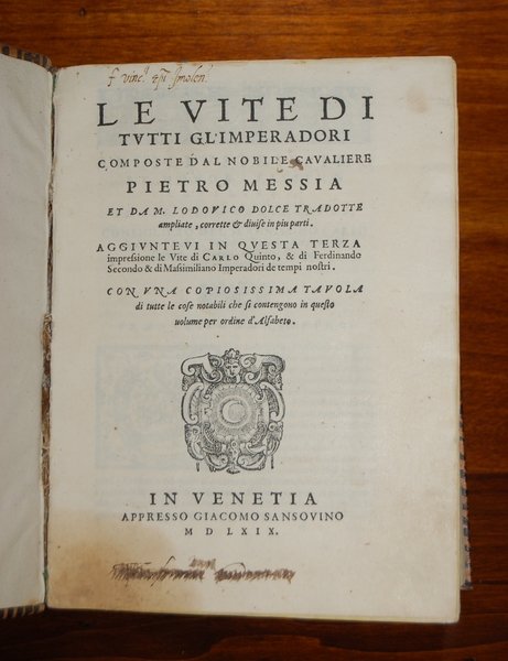 Le vite di tutti gli imperadori.et da M. Lodovico Dolce tradotte ampliate, corrette et divise in pi˘ parti, aggiuntevi in questa terza impressione le vite di Carlo Quinto.