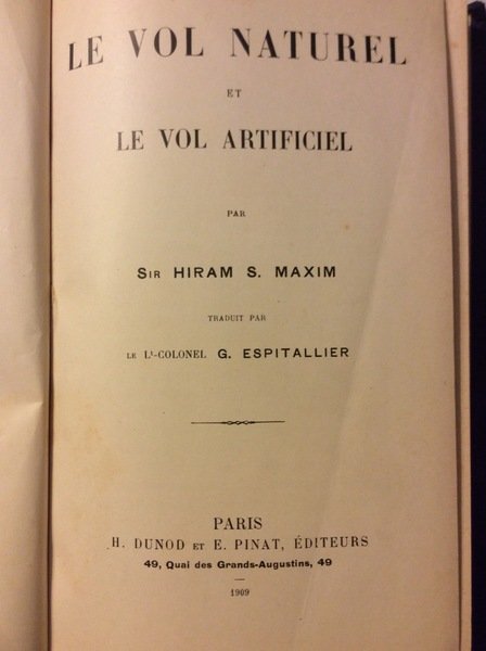 LE VOL NATUREL ET LE VOL ARTIFICIEL. - Traduit par le Lt-Colonel G. Espitallier.