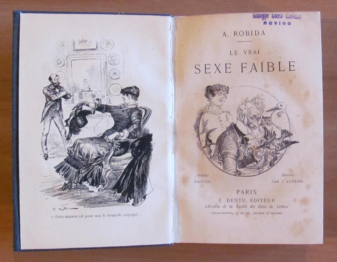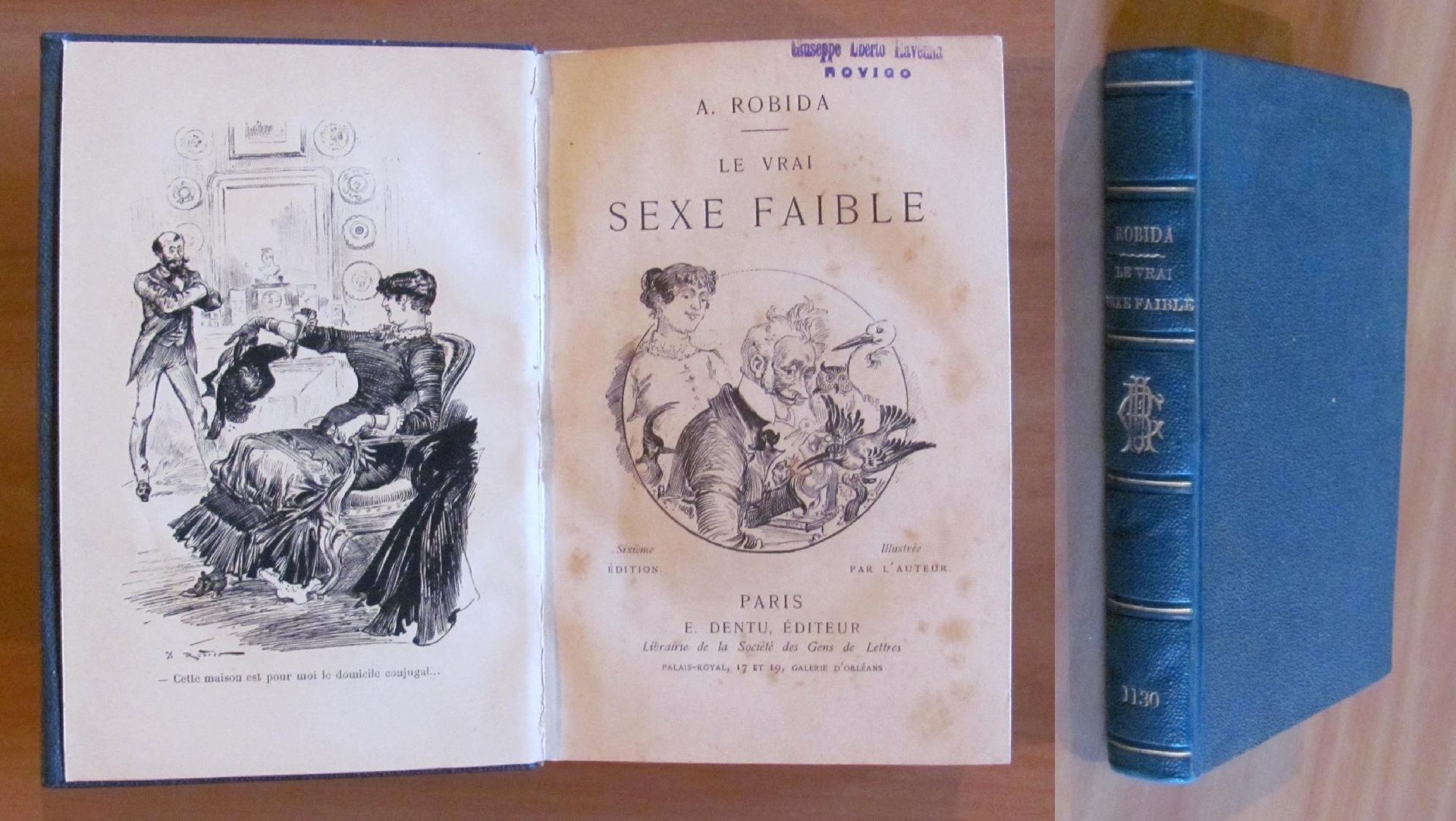 Illustrazioni in b/n n.t. e 6 tavole in b/n f.t. di A. Robida. Editeur E. Dentu - Paris, s.d. fine '800. Rilegatura coeva in tela con fregi e titoli in oro al dorso. Sigla al risguardo e timbro di vecchia appartenenza al frontespizio. Minime, sporadiche fioriture del tempo in qualche pagina ma freschissimo. 12,5x18; pp.320. Molto Raro, Ottimo stato. , Ottimo (Fine)