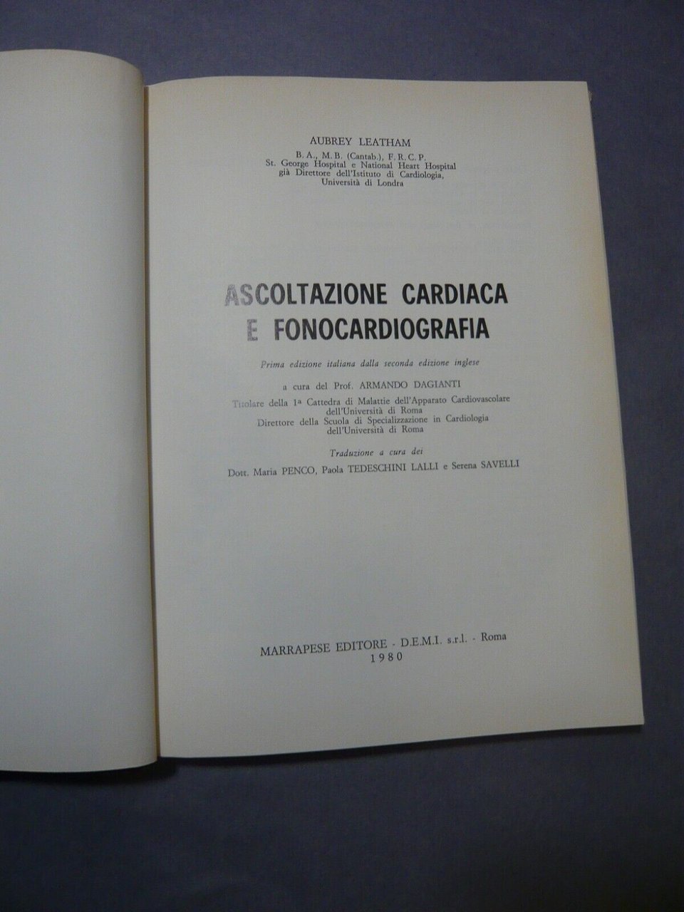 Leatham,ASCOLTAZIONE CARDIACA E FONOCARDIOGRAFICA,Marsalese 1980