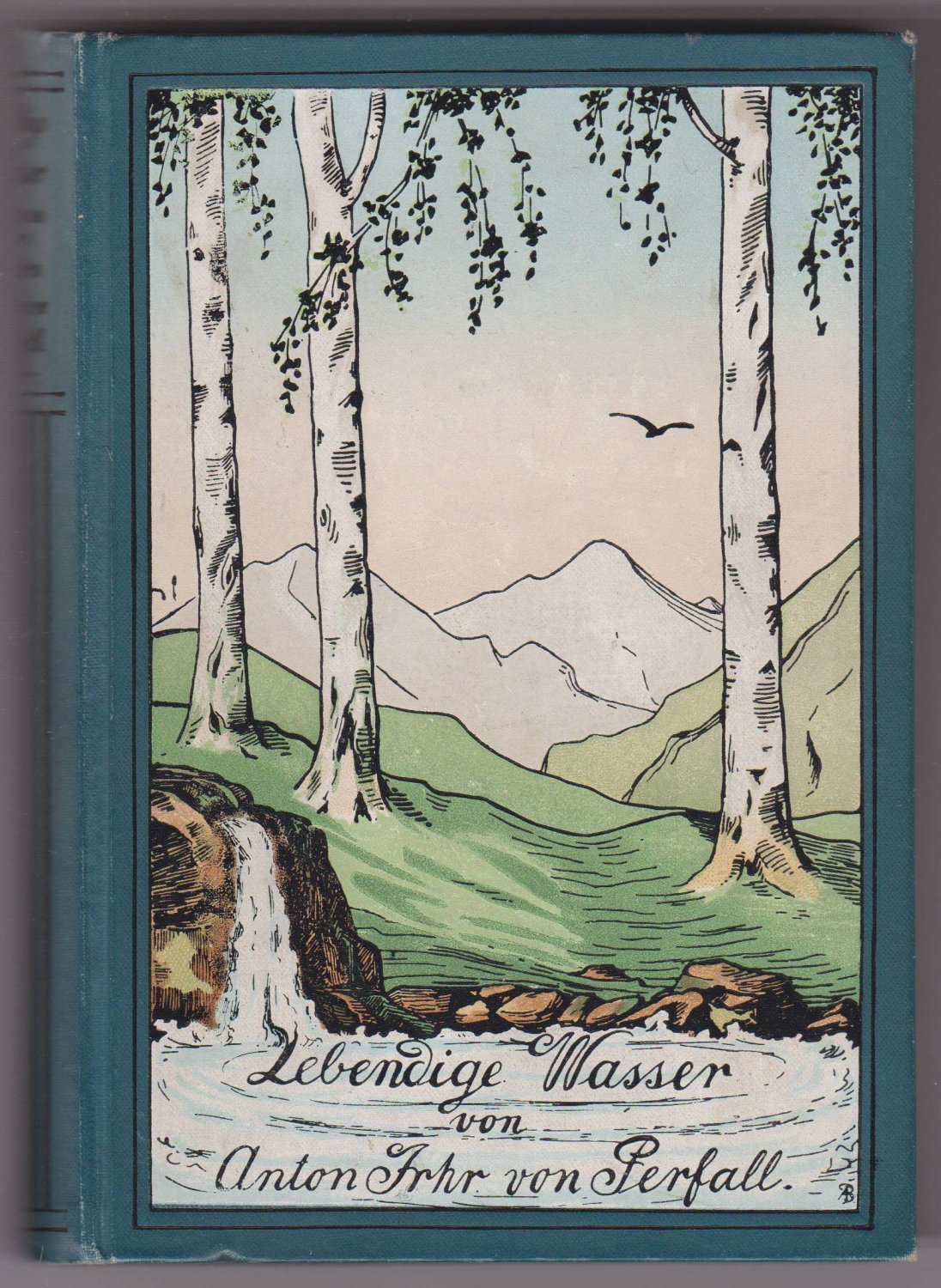 Hübsche Deckelillustration: Berge, Birken, Quelle.