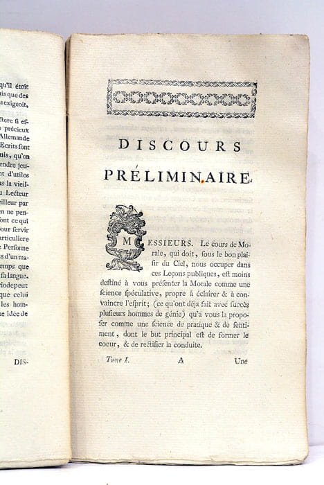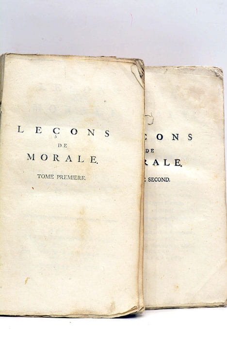 2 volumes. 590 pages (pagination continue) et 90 pages (Suite de la XXIIIe leçon ou instruction d'un père à son fils, qui part pour l'Université), avec 4 feuillets non chiffrés de table des 2 volumes. (22,5x12,5 Cm). Dérelié. Trace de vers sur la faux-titre du tome 2. Une partie de ce même tome complétement déreliée. Christian Fürchtegott Gellert était poète et érudit en théologie. Il a enseigné la philosophie à l'Université de Leipzig. Ce livre est une traduction française de l'allemand original de ses travaux universitaires en théologie.