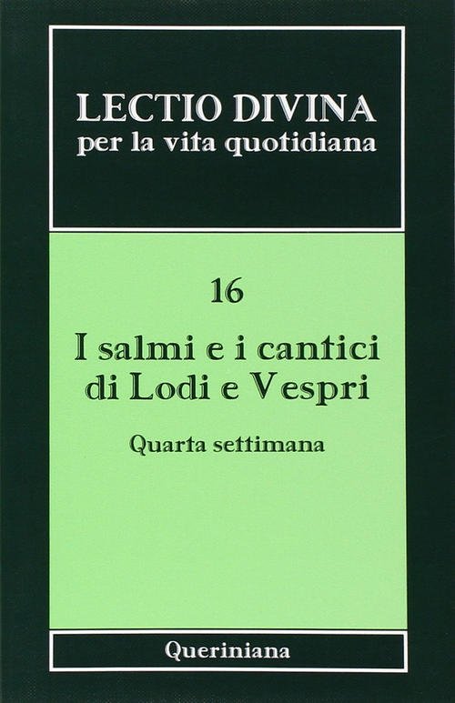Dettagli Libro<br><br>Sku: PZZLB27855<br>ISBN: 9788839920911<br>Titolo: Lectio Divina Per La Vita Quotidiana. Vol. 16: I Salmi E I Cantici Di Lodi E Vespri. Quarta Settiman<br>Autore: Monache Benedettine Dell'isola San Giulio<br>Editore: Queriniana<br>Anno: 2010<br><br>Nella tradizione del popolo di Israele, Gesù è stato educato alla preghiera con i salmi e ha fatto del salterio il suo libro di preghiera, (D. Bonhoeffer). La Chiesa poi, seguendo l'esempio del suo Maestro e Signore, ha fatto proprie quelle stupende liriche ispirate, esortando i credenti ad applicare i salmi non solo alle grandi festività, ma anche alle circostanze della vita di ogni giorno. Ne è nata così la Liturgia delle Ore. Questo libro introduce il lettore a pregare cristianamente i salmi di Lodi e Vespri. Basandosi sull'antico metodo della lectio divina, parte dal senso letterale o storico del testo originale ebraico, si inoltra nella rilettura cristiana suggerita dal senso spirituale, si rivolge alle illuminanti parole dei Padri e della liturgia della Chiesa, e infine aiuta a calare la Parola nel vissuto quotidiano dei giorni nostri. Ieri come oggi, nei salmi è Cristo che parla, è Cristo che prega e che viene pregato, è Cristo che parla di noi per mezzo di noi e in noi, così come noi parliamo di lui, (sant'Agostino). Nella misura in cui noi entriamo nel mistero di Cristo e della Chiesa, la parola dei salmi diventa la nostra parola: di invocazione e di lode, di supplica e di ringraziamento.