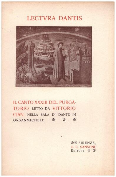 8° bross. edit. figur. fascicoli stampati elegantemente su carta a mano pp. 40/64 circa. INFERNO: canto I (T.Casini); V. (M.Casella); VII (M.Chini); VIII (E.Romagnoli); IX (G.A. Venturi); XIV (M.Scherillo); XV (N.Zingarelli); XVI (A.Zardo); XVIII (R.Fornaciari); XX (E.G.Parodi); XXI (D.Guerri); XXII (M.Chini); XXIV (S.Muratori); XXV (L.Pietrobono); XXVIII (V.Rossi); XXXIX (N.Zingarelli); XXXII (C.Grabher); XXX (L.Fassò); XXXI (A.Chiari); XXXIV (V.Vaturi). PURGATORIO: II (G.Albini); III (S.Ferrari);IV (A.Chiari); VI (F.Novati); VIII. (E.Donadoni); X (N.Campanini); XI (A.Pompeati); XII (F.Flamini); XIII (A.Zenatti); XVII (P.Rajna); XVIII (G.Tarozzi); XIX (F.Romani); XX (N. Zingarelli); XXIV (G.Lipparini); XXV (P.Giacosa); XXVI (F.Torraca); XXVIII (F.Biondolillo); XXIX (L. Pietrobono); XXXI (D.Mantovani); XXXII (F.Tocco); XXXIII (V.Cian). PARADISO: II (I.Sanesi); IV (L.Pescetti); V (A.Zardo); VI (F.Gobbi); VII (G.Giovannozzi); VIII (V.Vaturi); X (L.Fassò); XI (A.Bertoldi); XIII (G.Vandelli); XIV (C.Steiner); XVI (E.G.Parodi); XVII (I.Del Lungo con Appendice); XIX (L.Pietrobono); XXI (F.P.Luiso); XXII (A.Zardo); XXIII (F.Pellegrini); XXVI (A.Zenatti); XXVII (F.Romani); XXX (P.Savj-Lopez). Il lotto di 60 fascicoli, conservazione molto buona, in edizione originale.