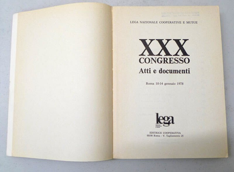 Lega Nazionale Cooperative e Mutue,XXX CONGRESSO.ATTI E DOCUMENTI,1978[storia