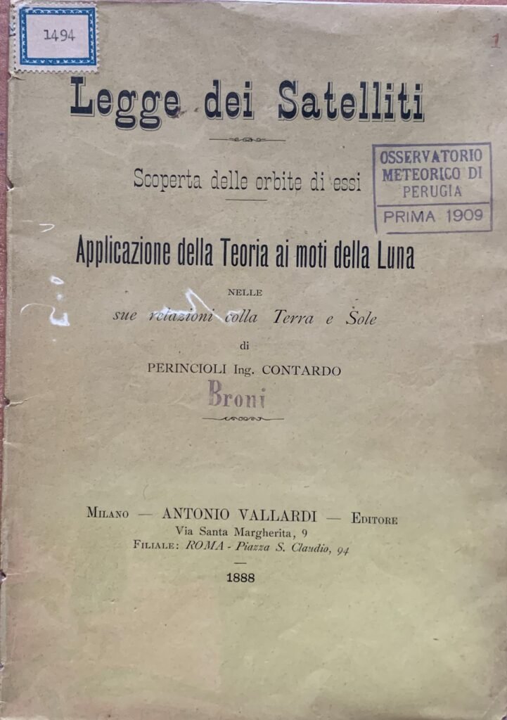 Legge dei satelliti. Scoperta delle orbite di essi. Applicazione della teoria ai moti della luna nelle sue relazioni colla terra e sole.