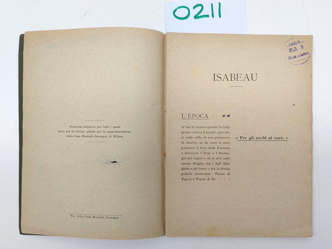 Luigi Illica Isabeau musica di Pietro Mascagni Sonzogno senza data