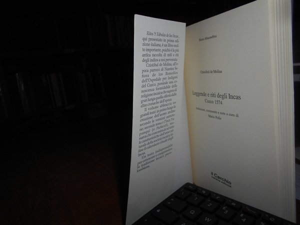 CRISTOBAL DE MOLINA. Rimini, Il Cerchio, 1993. Leggende degli Incas. CUZCO 1574. Traduzione, commento e note a cura di Mario Polia. In-8° piccolo, cart. edit. con risvolti. 153, (1) pp. Come nuovo. Neg. esot. mob. 50