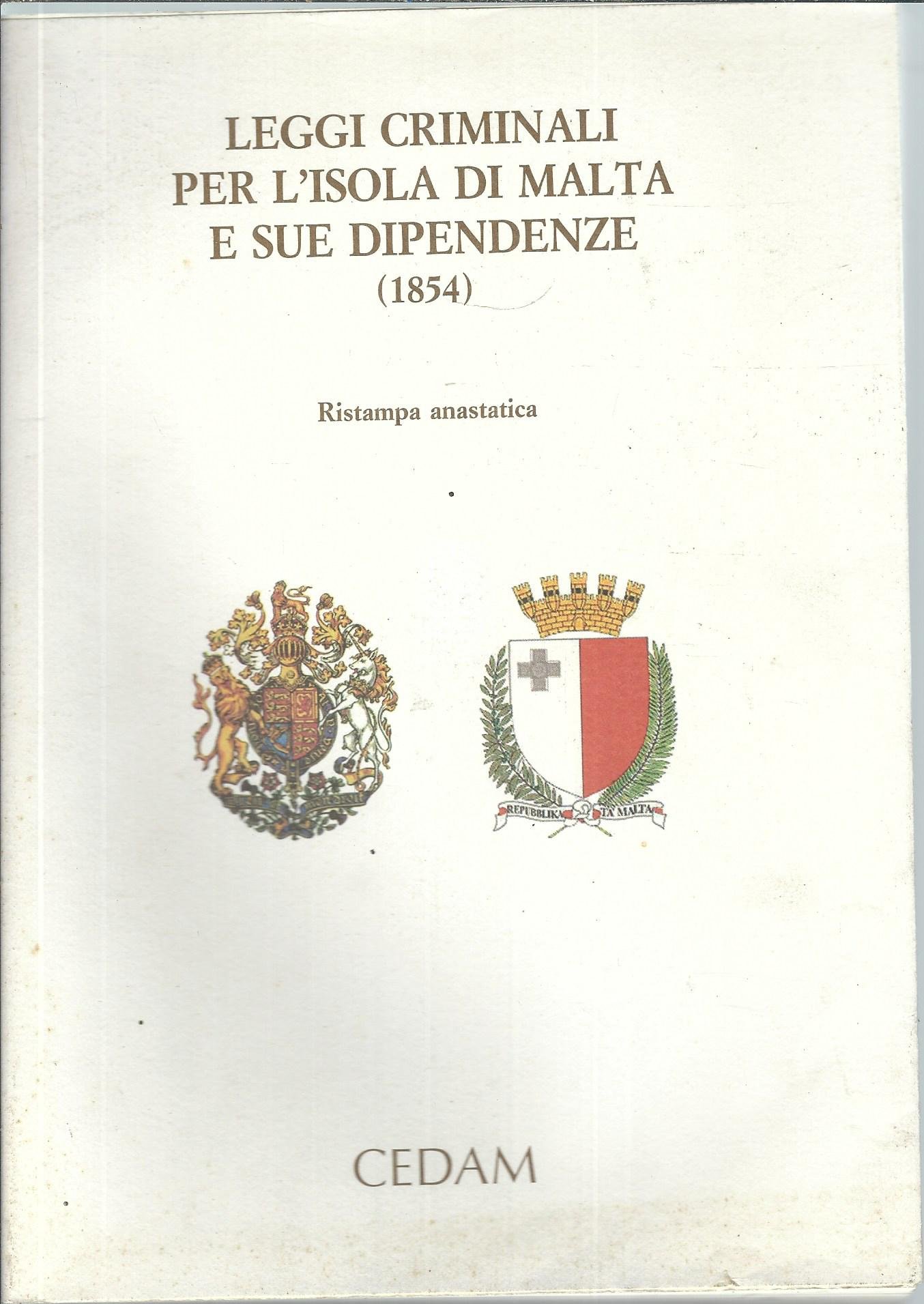 LEGGI CRIMINALI PER L'ISOLA DI MALTA E SUE DIPENDENZE - (1854) - RISTAMPA ANASTATICA