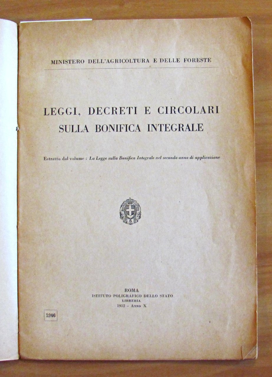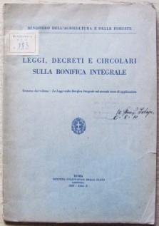 Leggi Decreti E Circolari Sulla Bonifica Integrale. Ministero Dell'Agricoltura E Delle Foreste