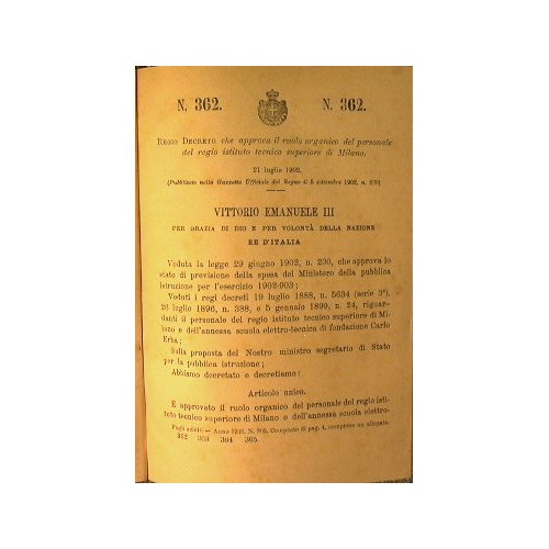Dal n.362 al 379 - 1902 - in 8° - pp.2 + 3 + 4 + 2 + 6 + 10 + 4 + 2 + 2 + 2 + 2 + 2 + 5 + 3 + 678 - Mezza tela - Due tabelle fuori testo più volte ripiegate
