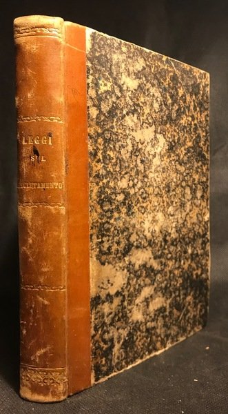 Legatura tardo ottocentesca in mezzza pelle con titoli dorati sul dorso, 8vo cm16x22, pp 46 (2), 464; numerosi facsimile di moduli di reclutamento. Uniti in un volume i due decreti, numero 3260 e 4252 della serie 2a.