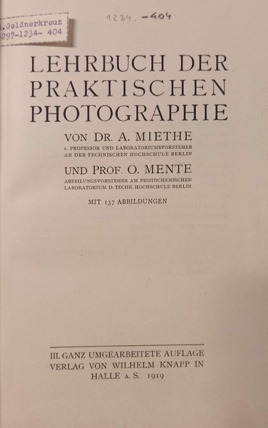 Copertina Rigida<BR>Condizioni Ottime<BR>Lingua Tedesco<BR>Terza edizione rivista. Con 137 illustrazioni, VIII, 396 pagine e XXXIV pubblicità. 17,5 x 24,0 cm, mezzo lino originale