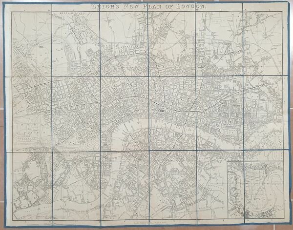 Rara mappa telata del 1830 circa della città di Londra pubblicata da Samuel Leigh. Di grandi dimensioni. AUTORE: Samuel Leigh DIMENSIONI FOGLIO: 625x495 mm DIMENSIONI INCISIONE: 615x490 mmEPOCA: 1830 circa CONDIZIONI: ottime condizioni. Beautiful cloth map of 1830 circa of the city of London published by Samuel Leigh. Of big size AUTHOR: Samuel Leigh LEAF DIMENSION: 625x495 mm ENGRAVING DIMENSION: 615x490 mm DATE: 1830 circa CONDITIONS: Very good conditions.
