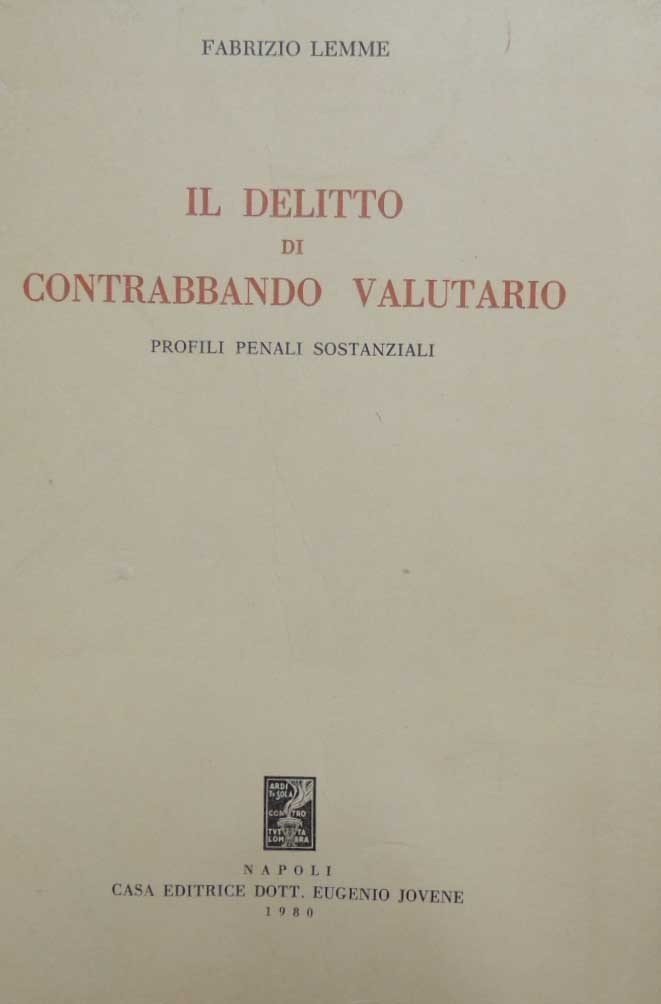 Fabrizio Lemme, Il delitto di contrabbando valutario. Profili penali sostanziali, Casa Editrice Dott. Eugenio Jovene, Napoli 1980, pp. VII, 181, cm 24, br. ed. Tracce d’uso alla brossura, con sgualciture, piccole abrasioni e qualche strappetto senza mancanze ai margini, per il resto sporadiche sottolineature a biro, ma volume complessivamente in condizioni più che accettabili e perfettamente fruibile.