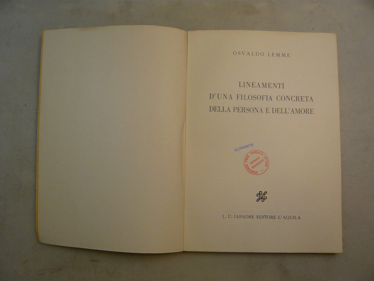 Lemme,LINEAMENTI D'UNA FILOSOFIA CONCRETA DELLA PERSONA E DELL'AMORE,(AQ),1971