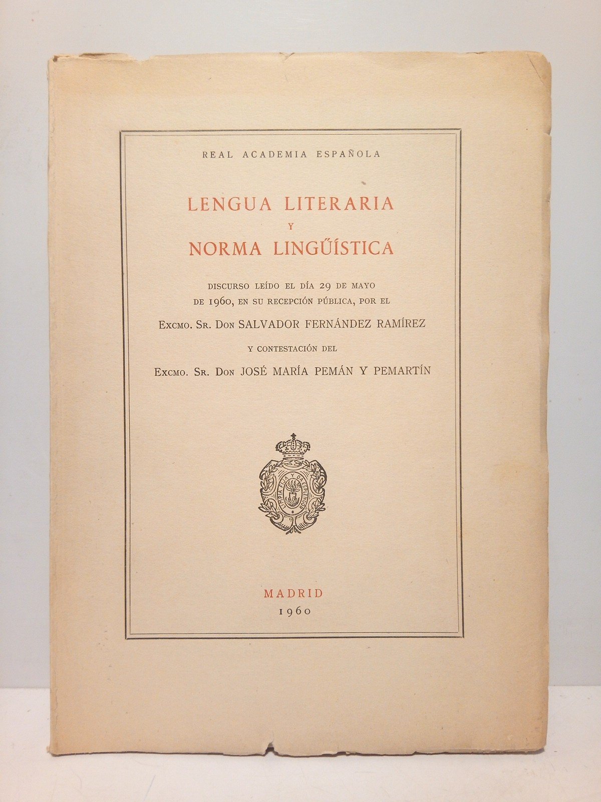 Lengua literaria y norma lingüística. (Discurso de ingreso en la Real Academia Española. CONTESTA: José María Pemán y Pemartín)