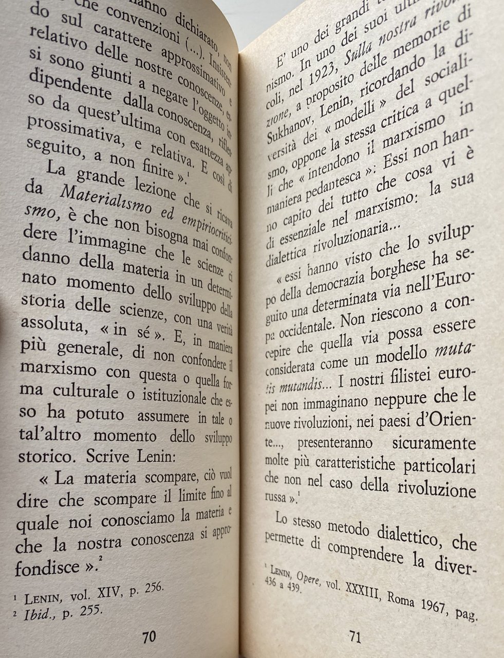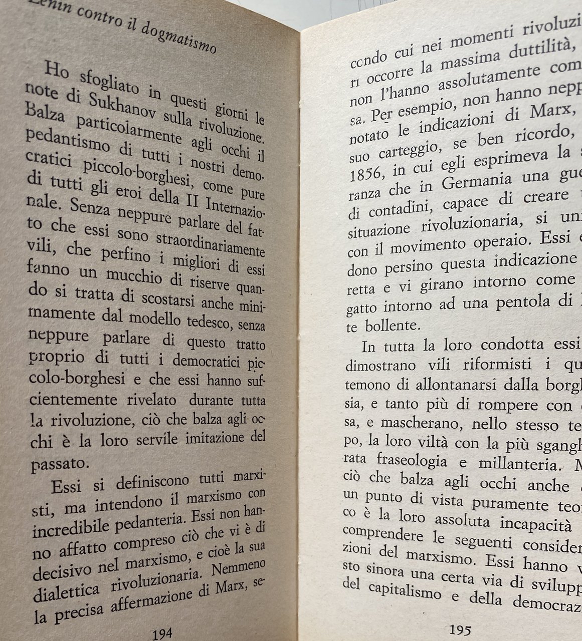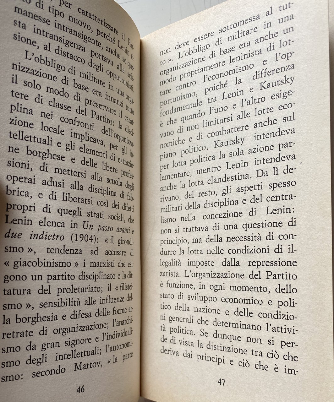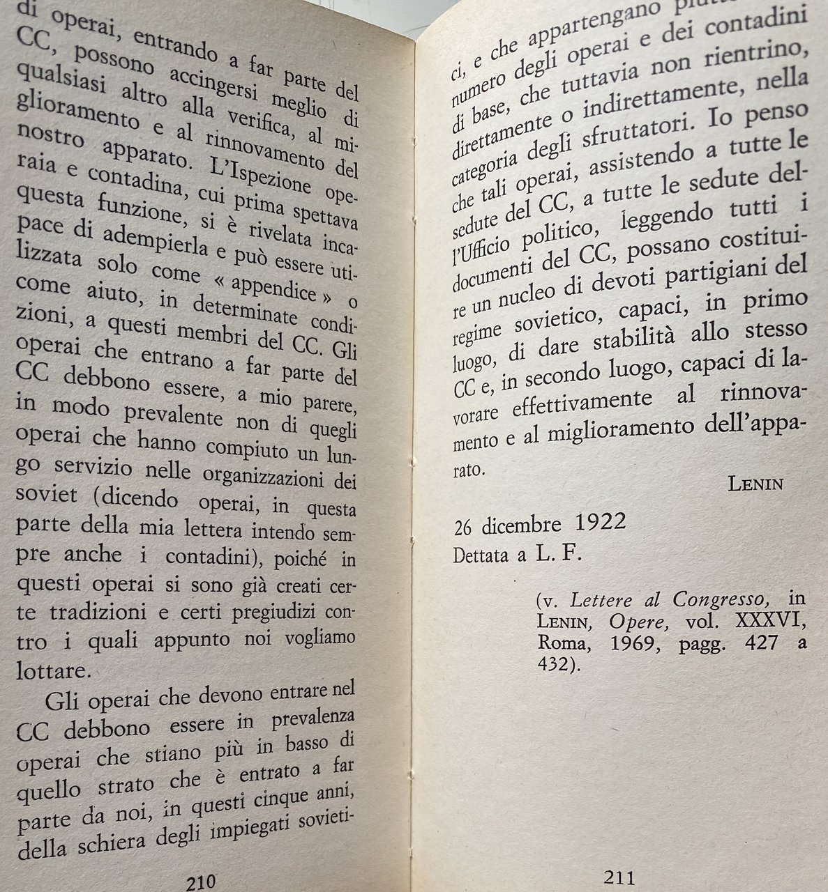 Soggetti: Politica, Comunismo, Ideologie politiche, Collezionismo, Anni Settanta, Libri Vintage fuori catalogo, Unione Sovietica, Sinistra, Partiti politici, Francia, Russia, Lotta di classe, Capitalismo, Piccolo Borghesi, Borghesia, Proletariato, Marxismo-leninismo, Ideologia, Comintern, Blocco orientale, Paesi socialisti, URSS, Socialismo democratico, Rivoluzione d'Ottobre, Intellettuali, Salario, Nuova Politica Economica, Trotsky, Bolscevismo, Zinoviev, Kamenev, Stalin, Gosplan, Bucharin, Pjatakov, Brest-Litovsk, Germania, Dzerzinskij, Kujbysev, Ordzhonikidze, Lettera, XII Congresso, Trotzkisti, Kommunist, Testamento politico, Diario, Burocrazia, Controrivoluzione, Chruscëv, Industria, Contadini, Collettivizzazione, Agricoltura, Sterminio, Kulaki, Terrore, Oppositori, Imperialismo, Sfruttamento, Colonie, Terzo mondo, Marx, Engels, Stato, Internazionale, Economia, Contraddizioni, Neoleninismo, Centralismo, Tesi, Aprile, Populisti, Soviet, Violenza rivoluzionaria, Cooperative, Produzione, Marxisti, Dialettica, Socialismo scientifico, Materialismo storico, Filosofia, Socialdemocrazia tedesca, Dibattiti, Bernstein, Kautsky, Questione agraria, Antibernstein, Via al potere, Cristianesimo, Critica, Menscevichi, Guerra imperialistica, Sciopero, Coscienza, Masse, Iskra, Lavoratori, Feudale, Sistema prussiano, Giustizia, Uguaglianza, Libertà, Privilegio, San Pietroburgo, Sabotatori, Controrivoluzionari, Zarismo, Est, Benessere, Tradimento, Nadezda Krupskaja, Umanesimo, Internazionalismo, Siberia, Fabbriche, Inghilterra, Svizzera, Polonia, Pravda, Kerenskij, Agafia Atamanova, Sinistra hegeliana, Dühring, Feuerbach, Natura, Materialismo dialettico, Kant, E. H. Carr, Interregno, Anna Uljanova, Vladimir, Aleksandr Blank, Victor Sebestyen, Movimento operaio, Antonio Negri, Hélène Carrère d'Encausse, Meldolesi Luca, Alfred G. Meyer, Studi marxisti, Georges Labica, Andrea Graziosi, Luca Meldolesi, Georges Haupt, Alain Besancon, Alberto Tovaglieri, Eugen Varga, Capitalisme monopoliste d'État, Classe ouvrière, Plekhanov, Dialectique, Bourgeoise, Bureaucratie, Cahiers philosophiques, Hegel, Rapports de production, Moscou, Les Philosophes, Boukharine, économie, Histoire, Social-démocrate, Politique, Société, Sociologie, Estratti, Ottocento, Novecento, Operai, Che fare?, Programma di Erfurt, Amici, Pamphlet, Darwinismo, Progresso, Dottrina economica, Empiriocriticismo, Sukhanov, Carteggio, Dogmatismo, Alleanze, Egemonia