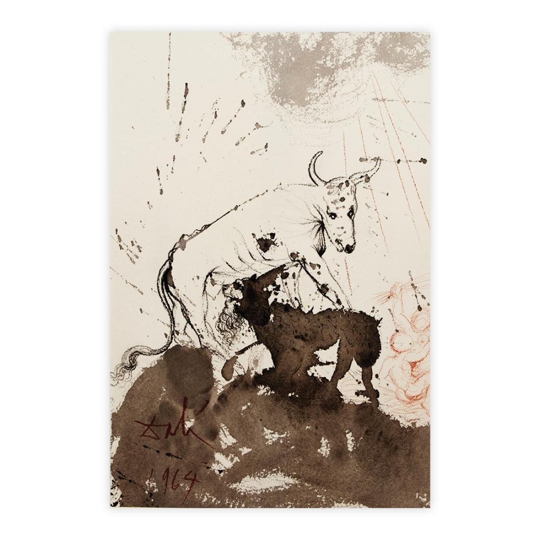 Vitulus et ursus pascentur, simul requiescent catuli eorum; et leo quasi bos comedet paleas. Et delectabitur infans ab ubere super foramine aspidis (Isaias, 11) "Lupus et agnus pascentur simul… Non nocebunt neque occident in omni monte sancto meo, dicit Dominus" (Isaias, 65) Salvador Dalì (1904-1989)Serilitografia originale a colori firmata in lastraProvenienza: Biblia Sacra Vulgatæ Editionis Rizzoli editoris mediolani Anno Domini M.CM.LXVII (1967)Dimensioni: cm 48,5 x 35Riferimento: Volume IV Pagina 80Certificato di autenticità allegato C.OA.Edizione disponibile: N. 1095/1499