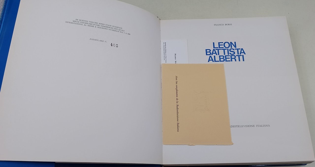 In 8' grande, leg. ed. con sovrac. e astuccio in cartoncino muto, pp. 372, ill. in n. n.t., edizione numerata fuori commercio, 405/600, conservato biglietto da visita e di invio RAI; bruniture all'astuccio, segni del tempo al dorso della sovrac., piccola abrasione all'unghia del piatto post. al margine sup., interni in buonos stato, lievi segni del tempo. ***Due to bureaucratic reasons, books dated over 70 years old cannot be immediately exported, please contact us before placing the order.***