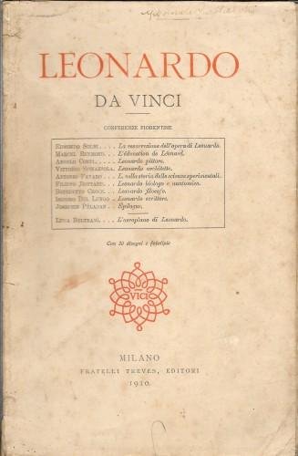 in 8°, pp. 6 nn., 327, bross. edit. Conferenze su Leonardo e la sua opera di Edmondo Solmi; Marcel Reymond; Angelo Conti; Vittorio Spinazzola; Antonio Favaro; Filippo Bottazzi; Benedetto Croce; Isidoro del Lungo; Josephin Peladan; Luca Beltrami, ill. da 30 disegni e fototipie f.t.; ex libris e timbro di poss.; rinforzi alla bross. e lievi fior. 442/29