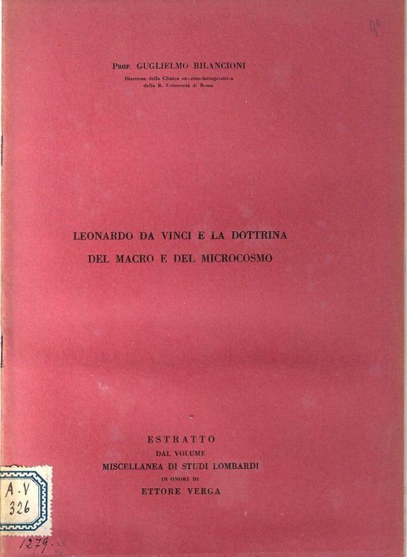 Leonardo Da Vinci e la dottrina del macro e del microscopio. (Estratto dal volume 'Miscellanea di studi Lombardi in onore di Ettore Verga'.
