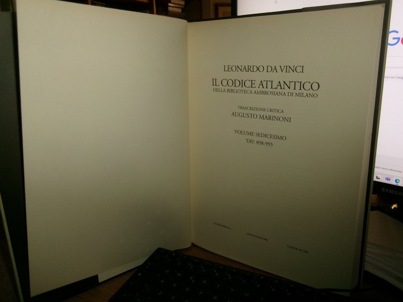 LEONARDO DA VINCI. Il Codice Atlantico Volume 16. Milano, Amilcare Pizzi, 2006. In-4° grande, cartonato edit. con sovracopertina. Tavole 898-955 - Testo: da pag. 161 a pag. 283. con tavole in bicromia f.t. Ottimo stato Neg. sport 1 da Vinci.