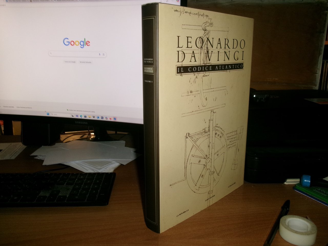 LEONARDO DA VINCI. Il Codice Atlantico Volume 5. Milano, Amilcare Pizzi, 2006. In-4° grande, cartonato edit. con sovracopertina. Tavole 266-325 - Testo: da pag. 145 a pag. 283. con tavole in bicromia f.t. Ottimo stato Neg. sport 1 da Vinci.