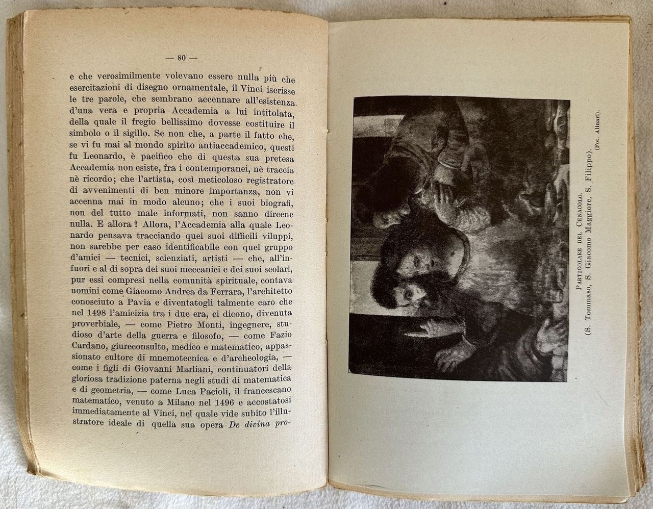 Edizione del 1928 di questa monografia su Leonardo da Vinci scritta da Aldo Oberdorfer. Alcune tavole fotografiche all'interno. In buone condizioni. Copertina editoriale in buone condizioni con lievi usure marginali. Legatura in buone condizioni. Pagine in buone condizioni con rare fioriture. In 8. cm 20x13. Pp. (6)+182.Edition of 1928 of this monography about Leonardo da Vinci written by Aldo Oberdorfer.<BR><BR>Some photographic plates inside. In good conditions Editorial cover in good conditions lightly worn in the extremities. Binding in good conditions. Pages in good conditions with occasional foxings. In 8. cm 20x13. Pp. (6)+182.